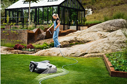 Kamerový systém s AI spolupracuje se satelitní navigací, což zajišťuje úplné pokrytí travnaté plochy také v oblastech se slabším satelitním signálem.